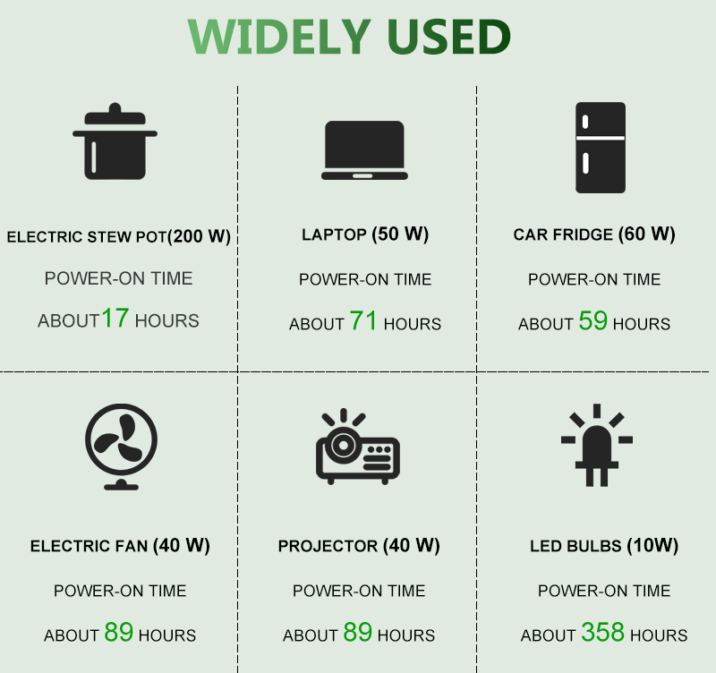7. පුළුල් යෙදුම: ආර්වී, කැරවාන්, නාවික, බෝට්ටු, ගොඩබිම, උපස්ථ බල සැපයුම සහ ඕෆ් ග්රිඩ් යෙදුම් සඳහා සුදුසු ය.