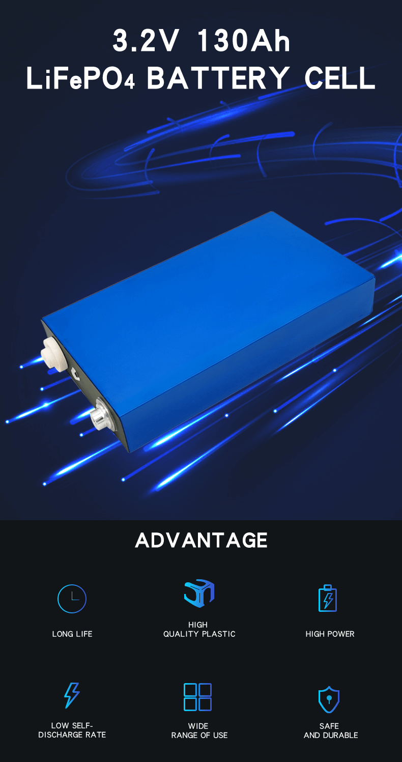 මෙම යූඑල් සහතික කළ 3.2V 130Ah LiFePO4 බැටරි සෛලයට පහත වාසි ඇත: