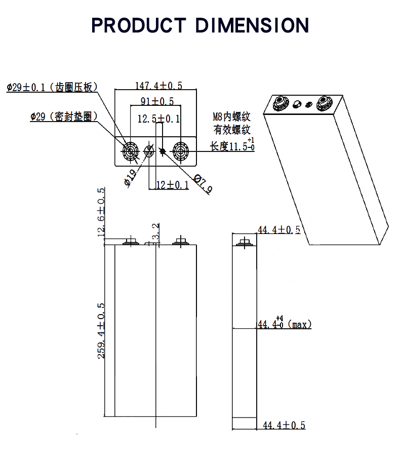 පරිමාණය (කරුණාකර ඇඳීම බලන්න) | 44.4*147.4*272 මි.මී. |