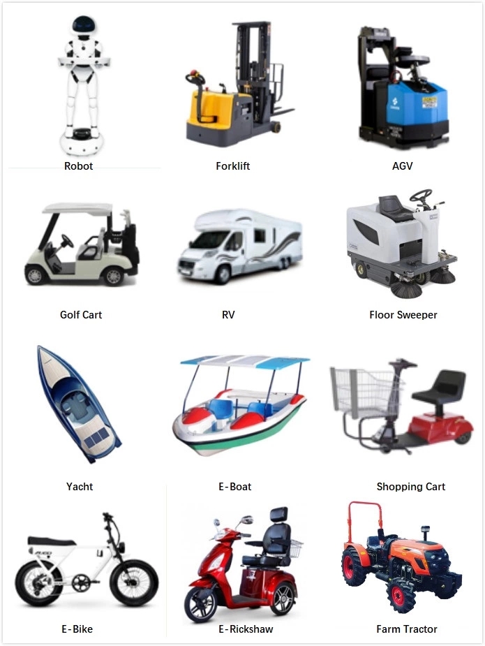 | අයදුම්පත් | ගොල්ෆ් කරත්ත, විදුලි ෆෝක්ලිෆ්ට්, මන්දගාමී වේගය කාර්; AGV, විදුලි යතුරුපැදිය; දර්ශන නැරඹීමේ මෝටර් රථය;RV, ත්රිරෝද රථ, විදුලි වාහන, විදුලි රෝද පුටු, විදුලි බල පද්ධති, අඛණ්ඩ බල සැපයුම්, සූර්ය බලශක්ති ගබඩා පද්ධති, බෝට්ටු |