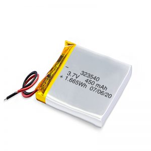 PCB සමඟ ලිතියම් පොලිමර් බැටරි 450mah 3.7v නැවත ආරෝපණය කළ හැකි ලිතියම්-අයන බැටරි / li-ion බැටරි 323540