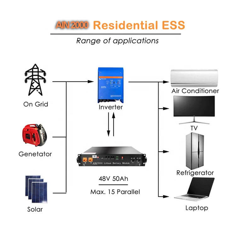 1.AIN2000 48v සෞරග්රහ මණ්ඩලයේ බැටරි ආරක්ෂාව සහ කැපී පෙනෙන සේවා කාලය සහතික කිරීම සඳහා ඉහළ කාර්යසාධනයක් සහිත LFP සෛල 3.2V 50Ah සහ EV සම්මත ව්යුහයකින් සංවර්ධනය කර ඇත.